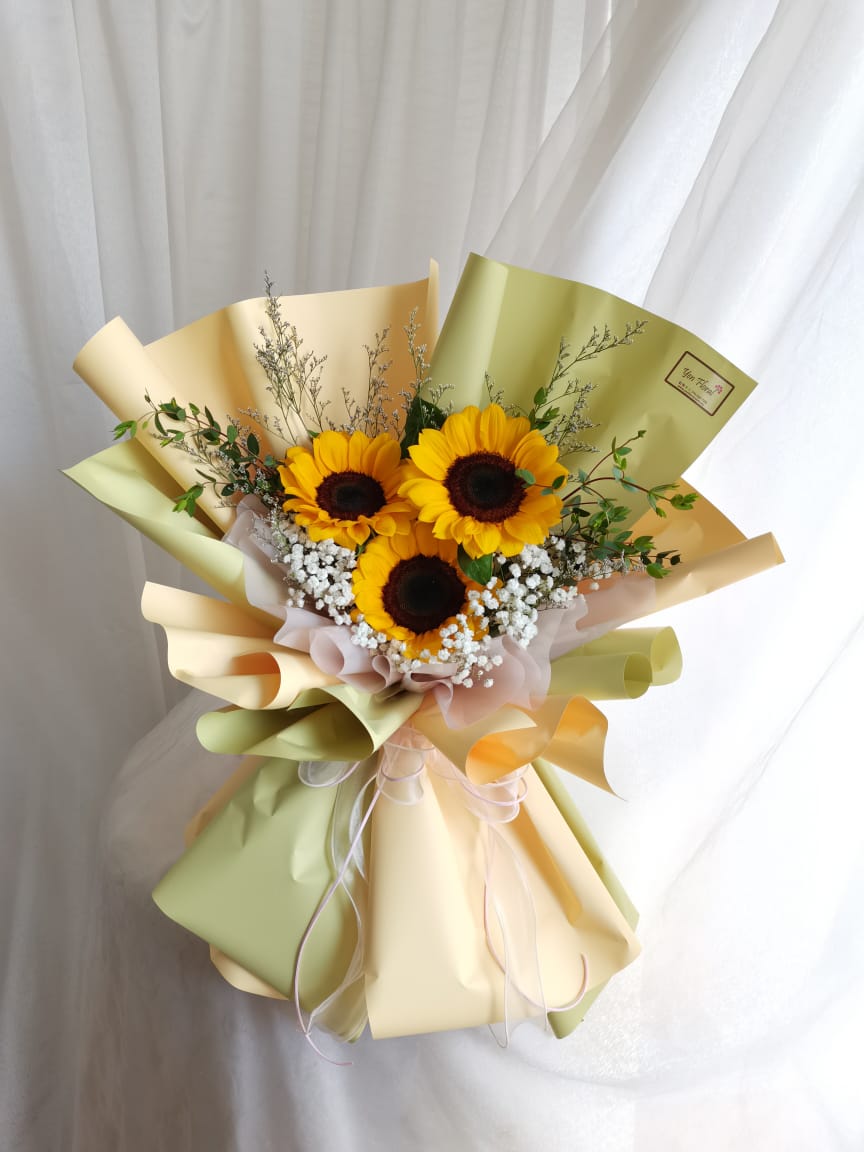 3 stalks sunflower with fillers. Wrapping color change upon requested.