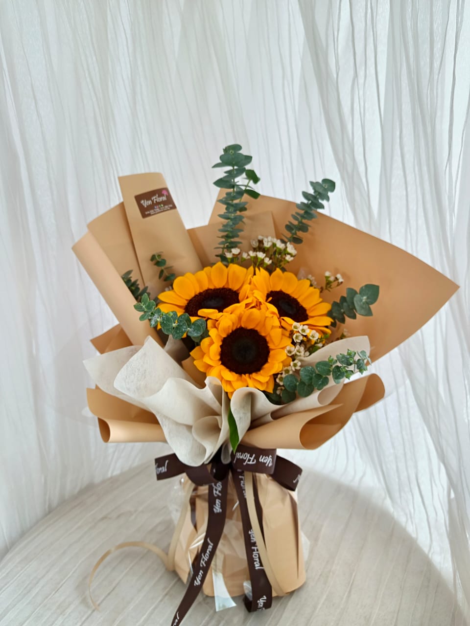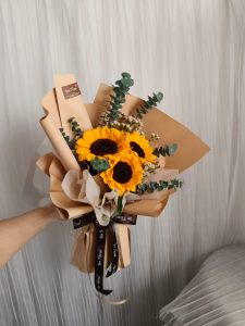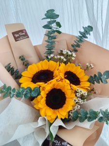 3 stalks SUNFLOWER hand bouquet. Wrapping color can change upon request.